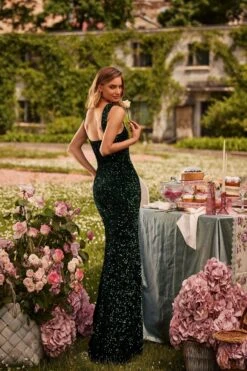 Providing luxury & elegance, the Ainsley Set was designed with the finer details in mind. Includes a straight neckline, diamante waist ties & v-shaped waistline, this set is elevated with its beaded glitter fabric for a luxe look.