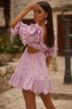Look classy & feminine in the Andrey Dress. This gorgeous pink maxi dress features off-shoulder puffy sleeves, wrap bustier with detachable waist tie and flattering a-line skirt with frill hem detail.Â