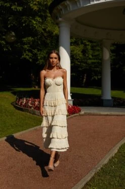 Cut from sculpting twill fabric, this couture midi dress encapsulates glamour. The Arianna dress features an attached pleated bodice with a bow back and fitted pencil skirt. Made to make a statement, the Arianne Dress will catch all the attention.
