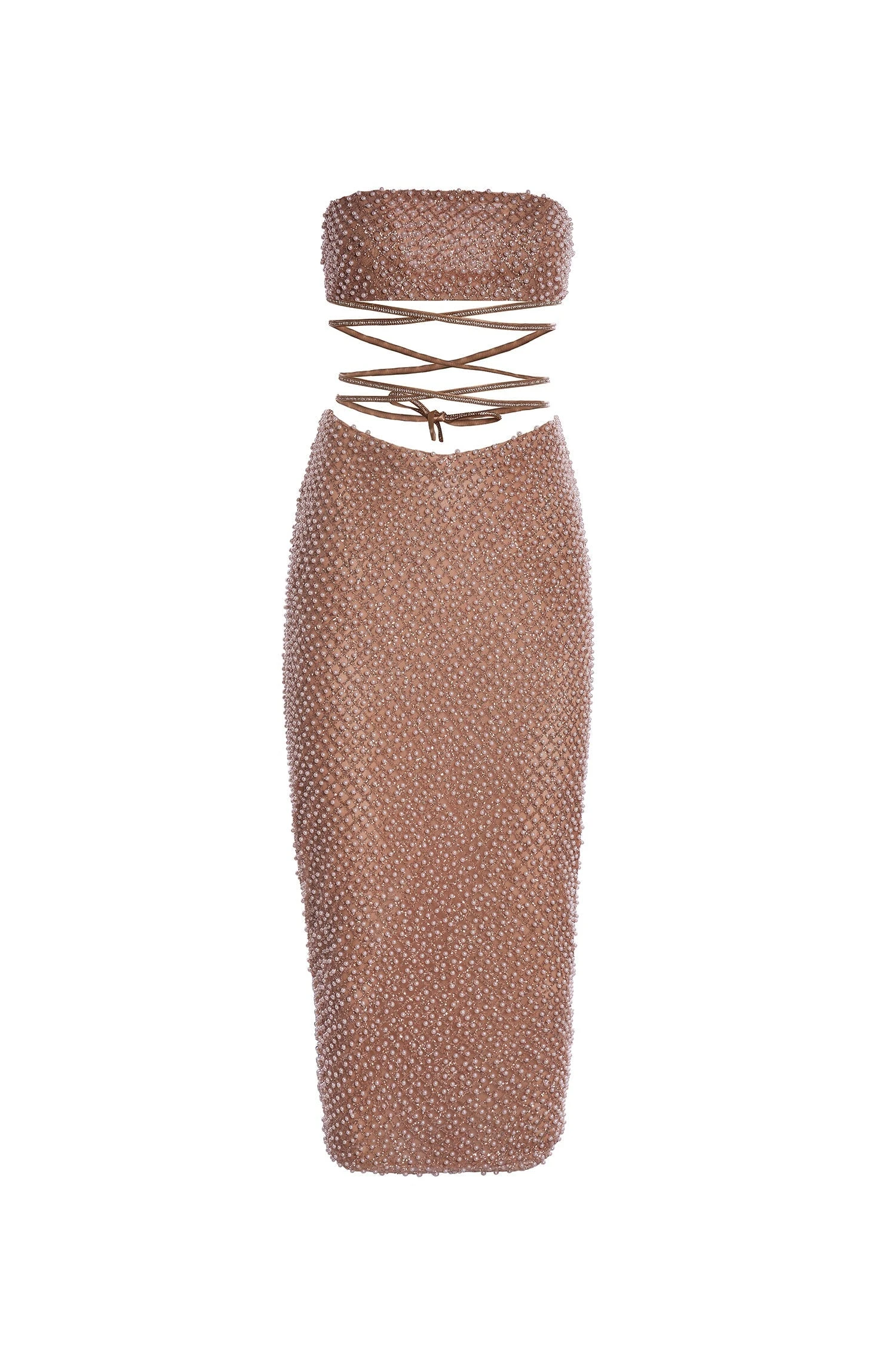The Selah Set will elevate your event wear with its beaded glitter fabric, diamante waist ties & bodycon silhouette. Baring an exposed midriff, back slit, and straight neckline, this set will capture all the attention.